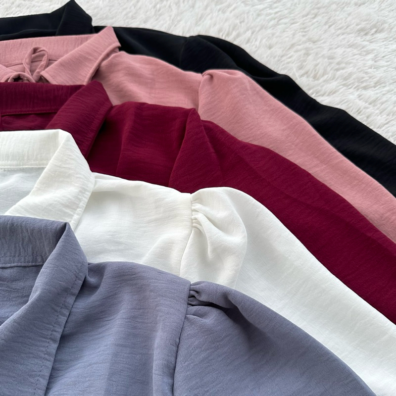 Yerin Top / Blouse Wanita Korea Pita / Coquette Blouse / Atasan Coquette Murah / Blouse Hijab Kantor Kasual Lengan Panja