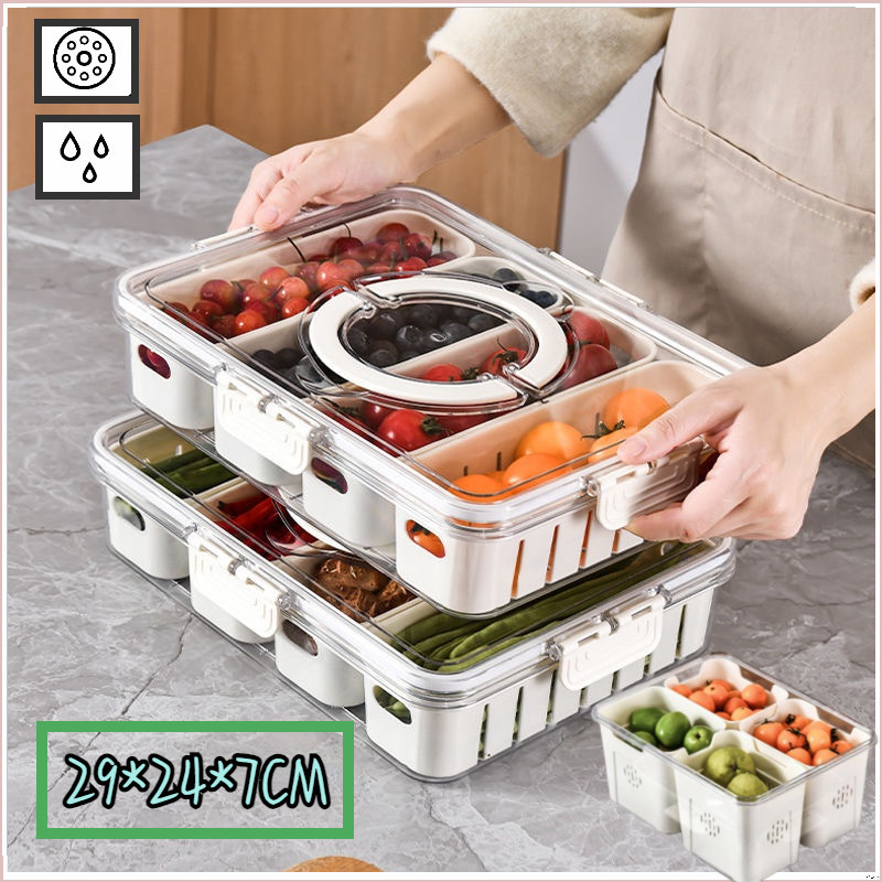 Kotak Penyimpanan Segar Tertutup Kulkas Kotak Penyimpanan Makanan Sayuran Makanan Dengan Saringan