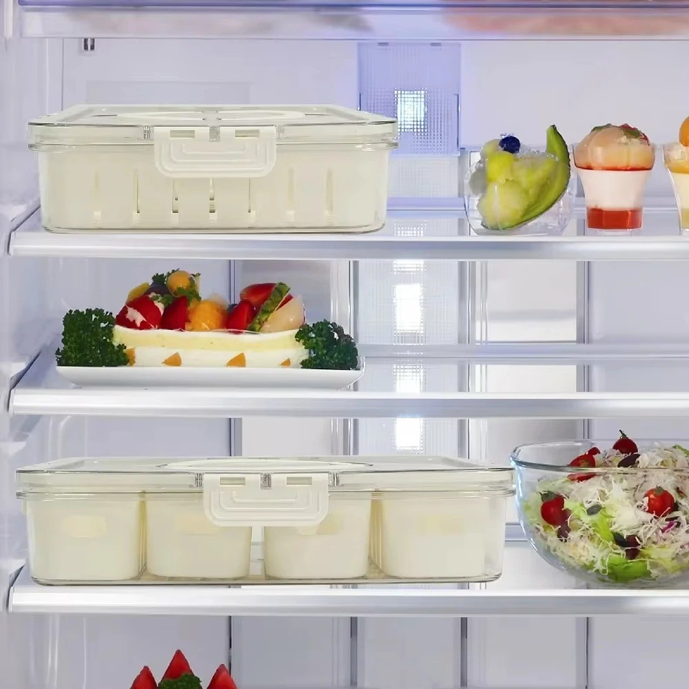 Kotak Penyimpanan Segar Tertutup Kulkas Kotak Penyimpanan Makanan Sayuran Makanan Dengan Saringan