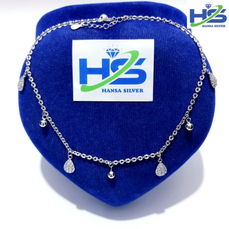 Gelangg Kaki Perak Asli Silver 925 Lapis Ems Putih Rantai Nori Ukir Gantungan Manik - Perak Asli
