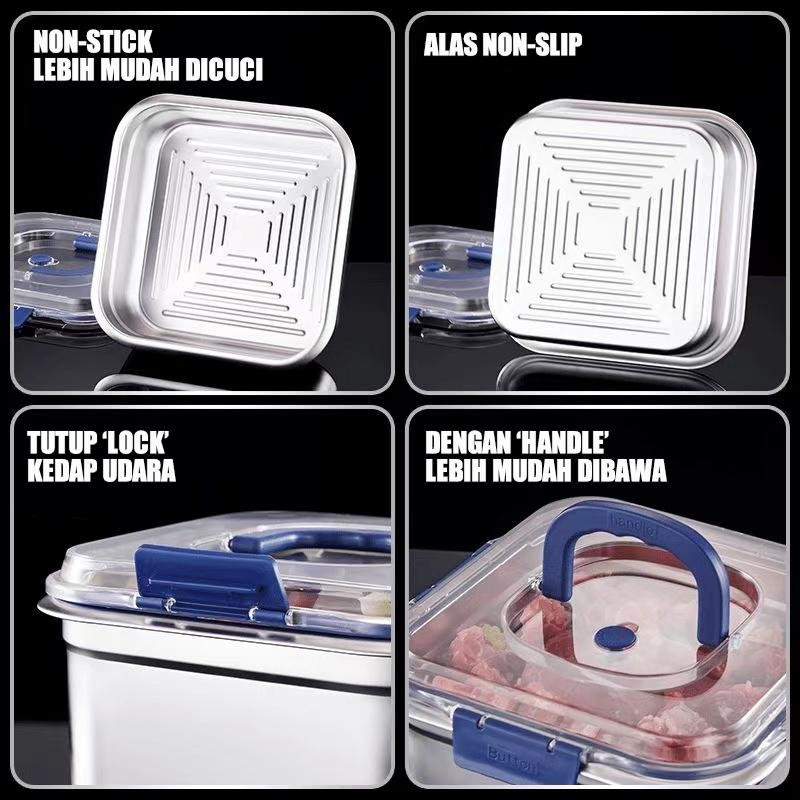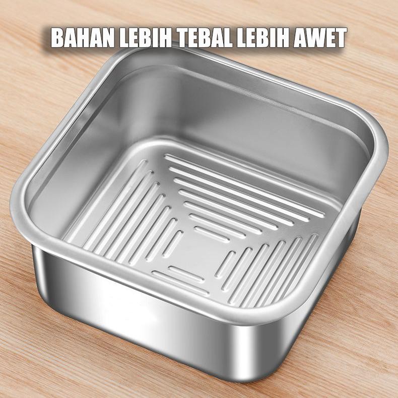 ES Kotak Makanan Stainless Steel Food Grade Dengan Penutup Kedap Udara Wadah Makanan Kedap Udara untuk Kulkas, Buah,