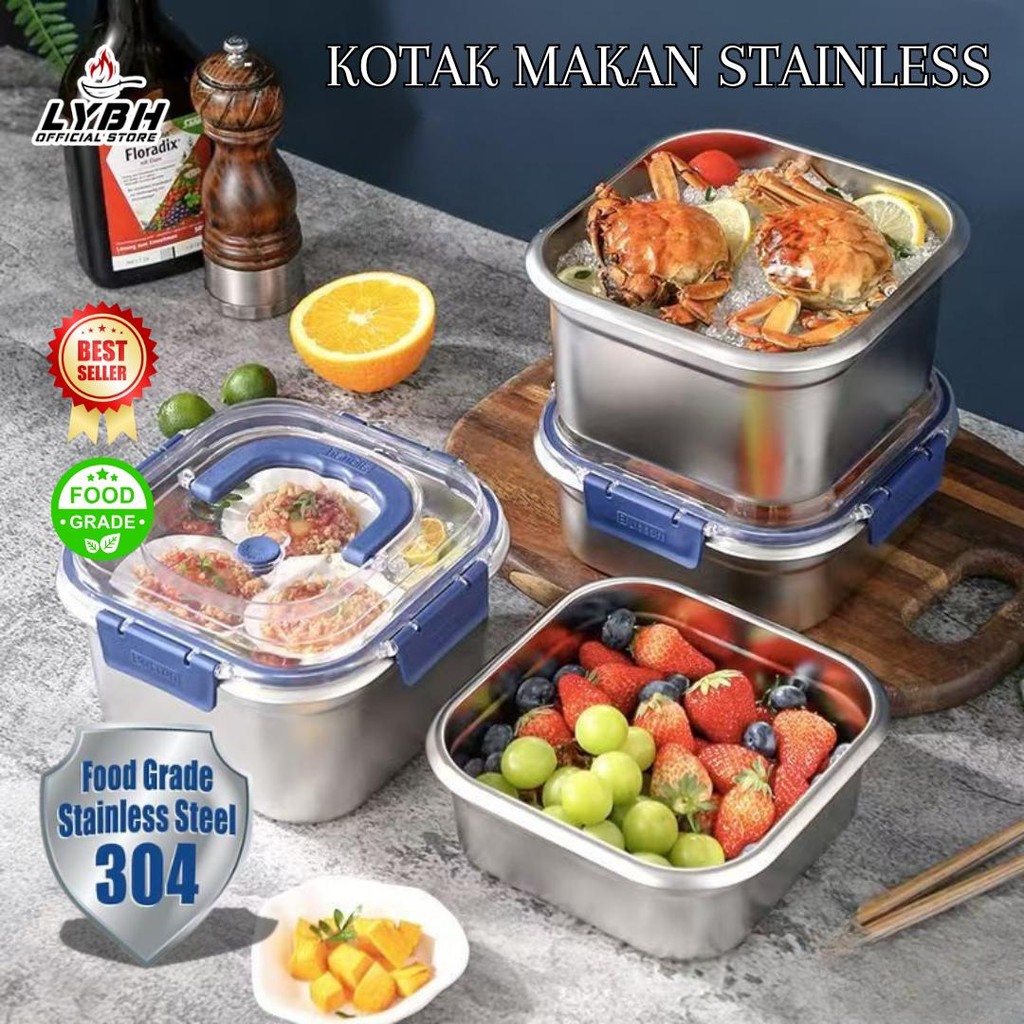 A ES Kotak Makanan Stainless Steel Food Grade Dengan Penutup Kedap Udara Wadah Makanan Kedap Udara untuk Kulkas, Buah