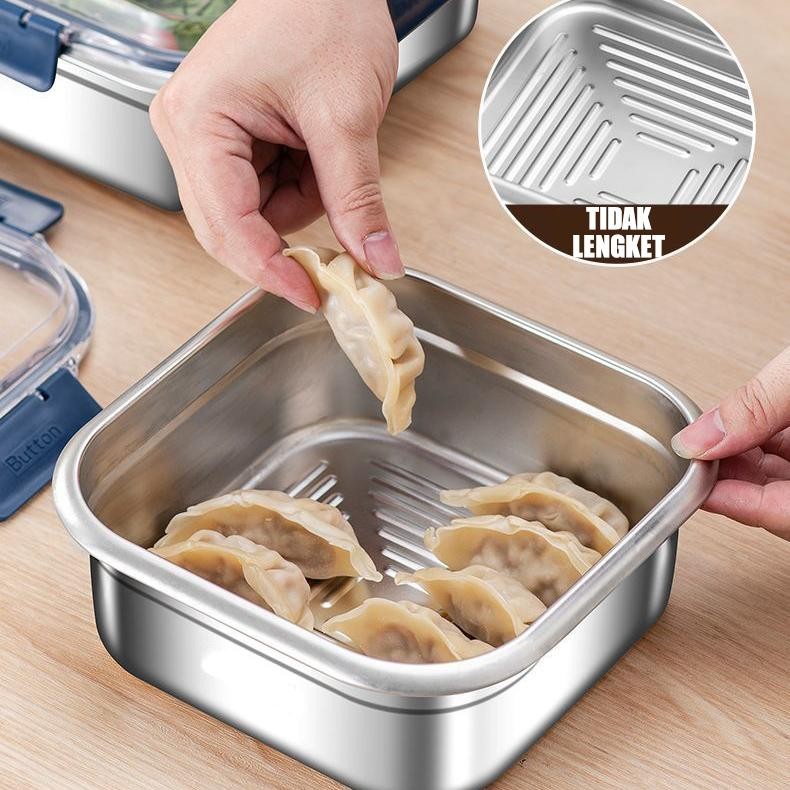 ES Kotak Makanan Stainless Steel Food Grade Dengan Penutup Kedap Udara 【Diskon Spesial】Kotak Penyimpanan Stainless Steel