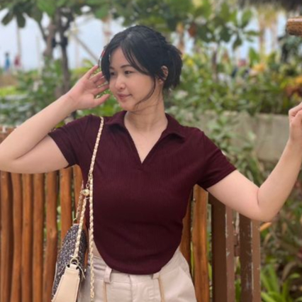 Elda label polo crop top v neck oval kekinian lengan pendek wanita kaos cewek Cantik Panjang Baju wanita Atasan Wanita
