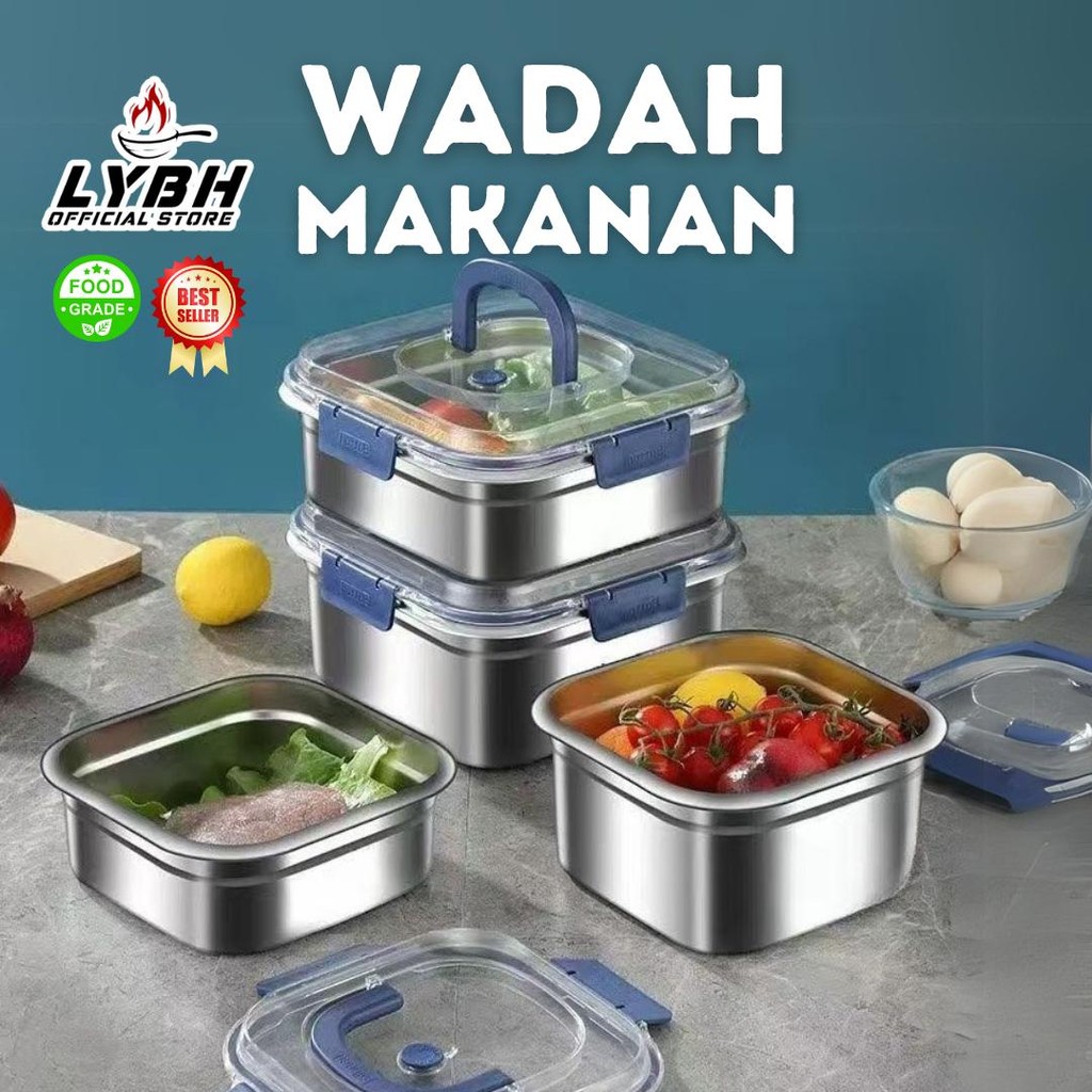 ES Kotak Makanan Stainless Steel Food Grade Dengan Penutup Kedap Udara Wadah Makanan Kedap Udara untuk Kulkas, Buah