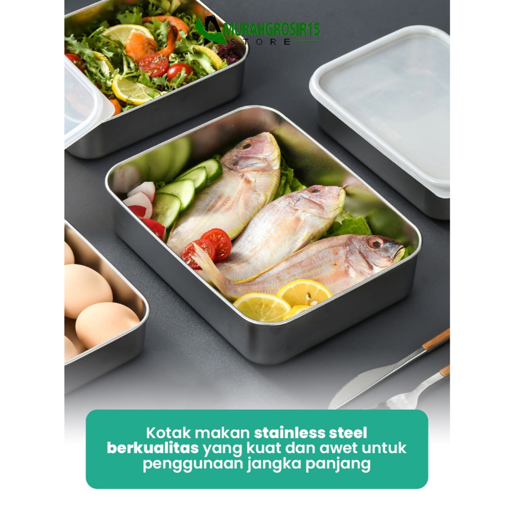 BOX MAKANAN STAINLESS FOOD KONTAINER-WADAH KONTAINER BAHAN STAINLESS UKURAN 1700ML-1100ML-650ML