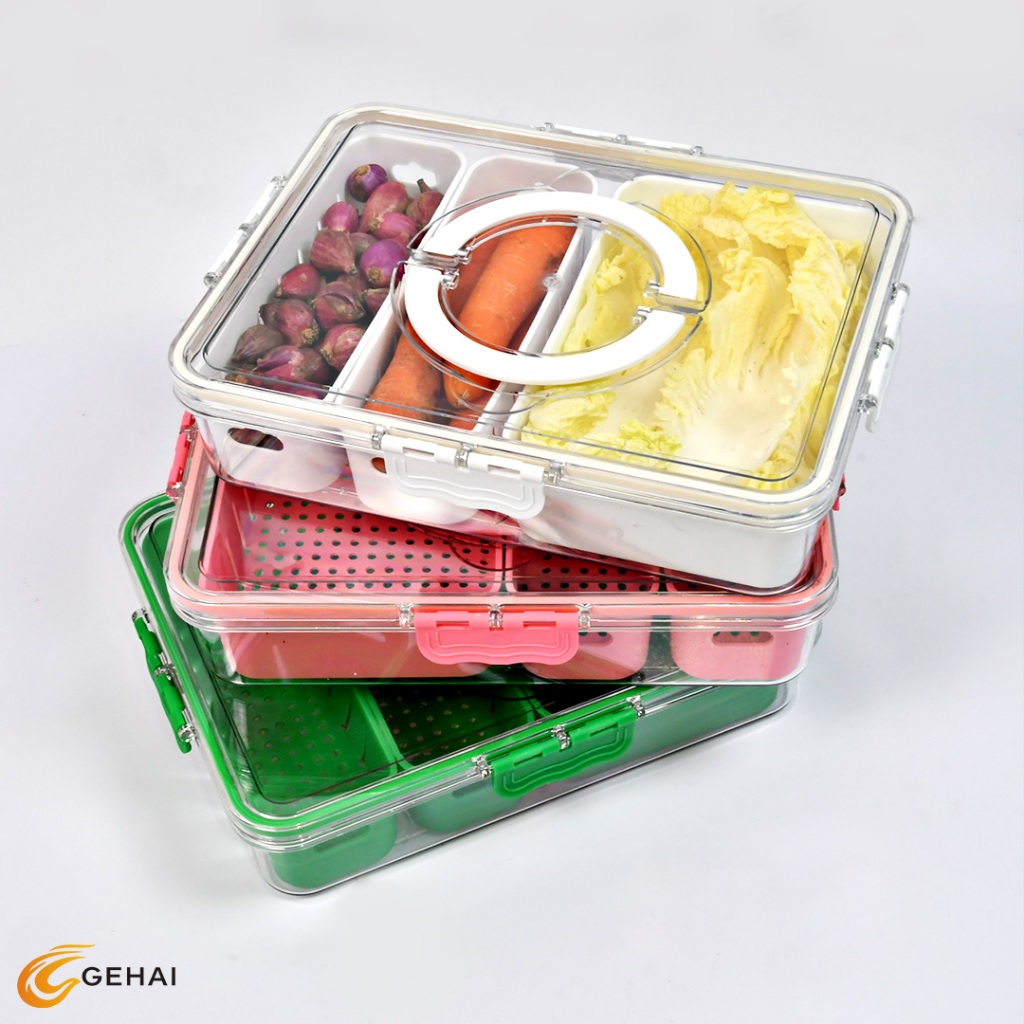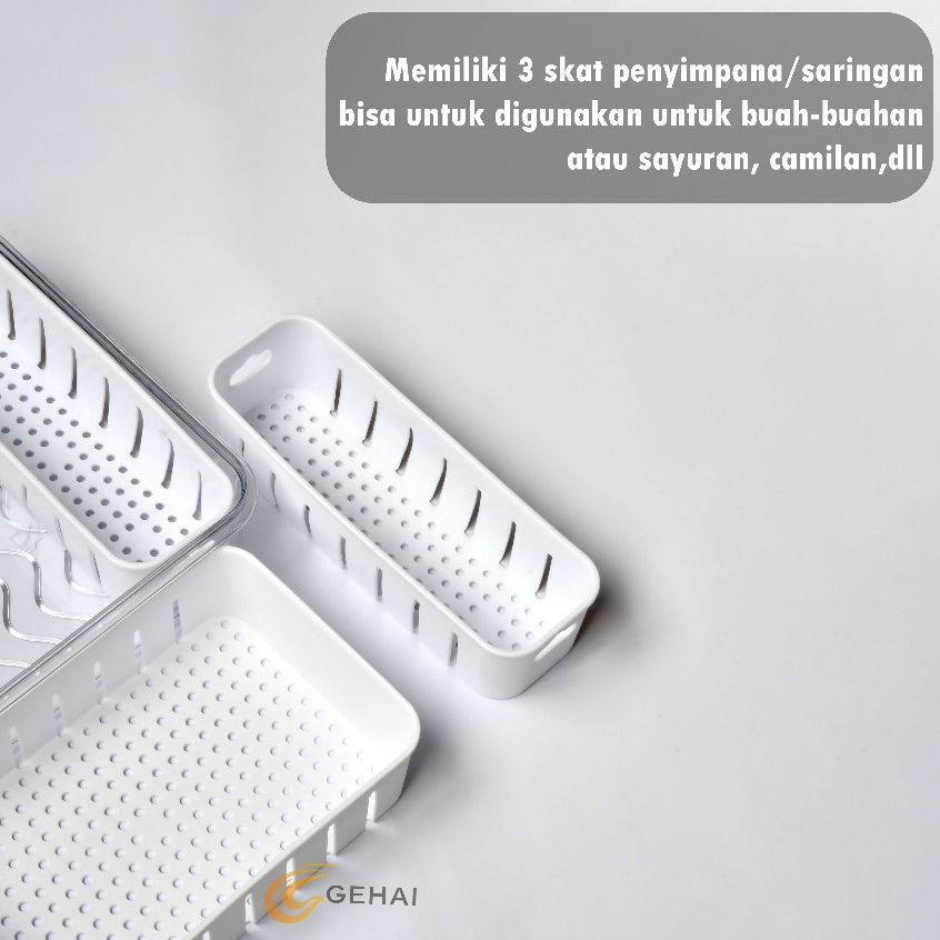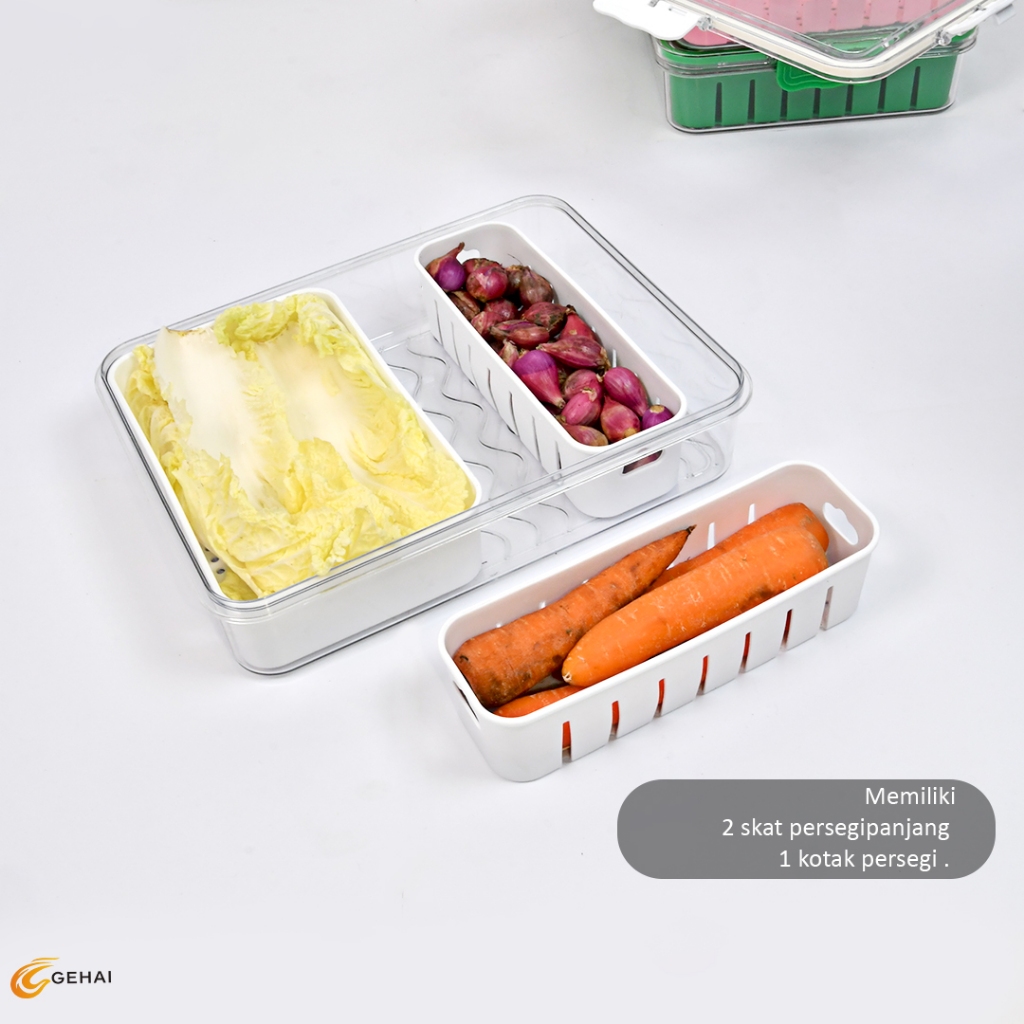 Kotak Penyimpanan Kulkas Food Container Wadah Tempat dengan tutup kedap saringan 3 Sekat Segar Cegah Kebocoran