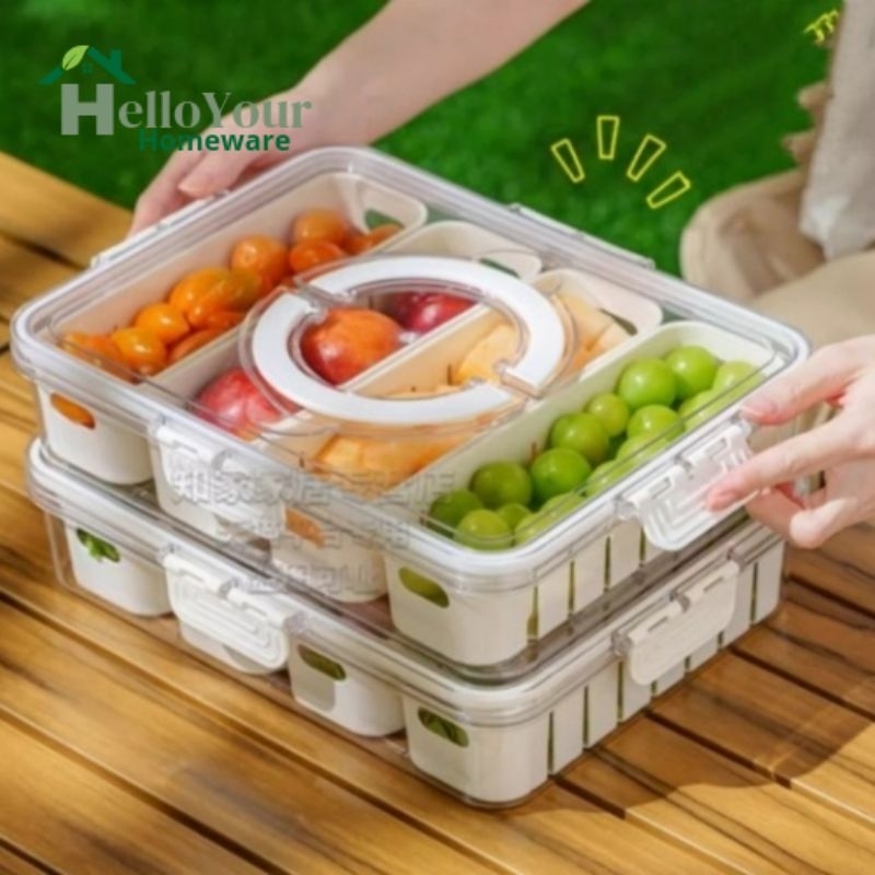 Kotak Toples Penyimpanan Makanan Buah Sayur Toples Prasmanan Jar Dengan Sekat Serbaguna
