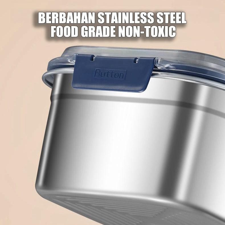 A ES Kotak Makanan Stainless Steel Food Grade Dengan Penutup Kedap Udara Wadah Makanan Kedap Udara untuk Kulkas, Buah