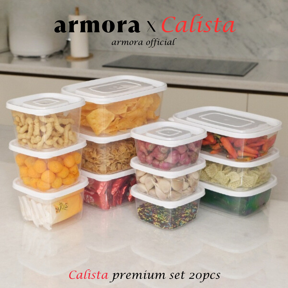 Food Kontainer Toples Plastik Bening Putih Calista Oita Premium Set 20pcs Wadah Tempat Penyimpanan Makanan Food