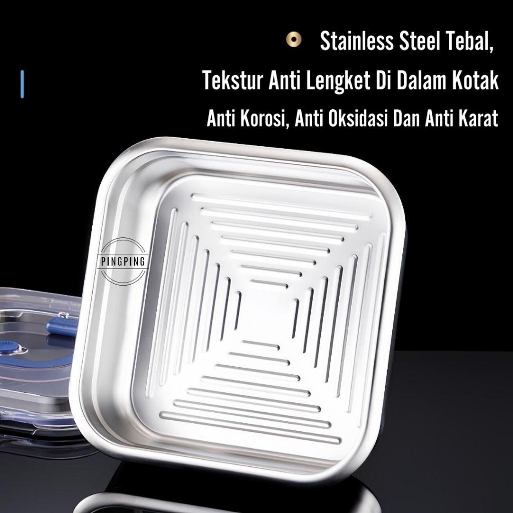 Kotak makanan stainless steel food grade 304 dengan segel, kotak makan siang untuk dibawa ke kantor, cocok untuk lemari