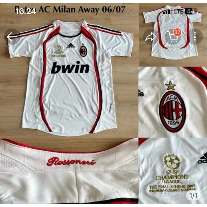 PROMO | Jersey Kaos Baju Sepak Bola Milan Home Away Bwin Putih Retro Klasik Classic Jadul Lawas Vintage Big Size XXL 2XL