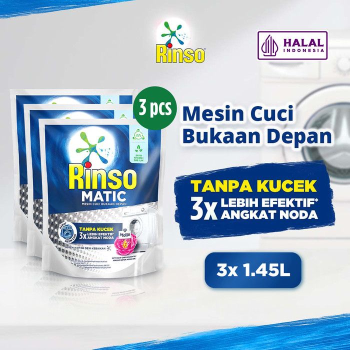 Rinso Matic Detergen Deterjen Cair Mesin Bukaan Depan 1.45L isi 3