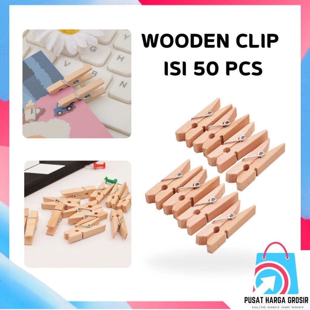 (FLASH SALE) PHG - Wooden Clip 35mm Isi 50Pcs Penjepit Foto Kayu Polos 3,5 cm