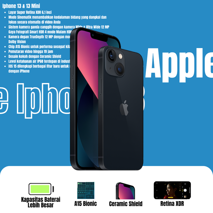 [Mall] Iphone 13 Second Garansi Normal All Operator Original 128GB 256GB 512GB Fulset Mulus Like New HP Mini Inter Ibox