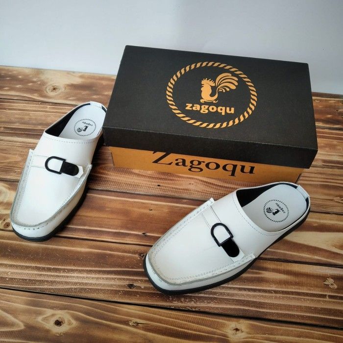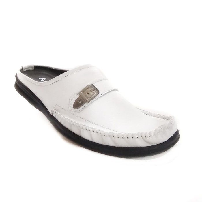 sepatu sandal pria putih model selop bustong pria kulit asli ARB007