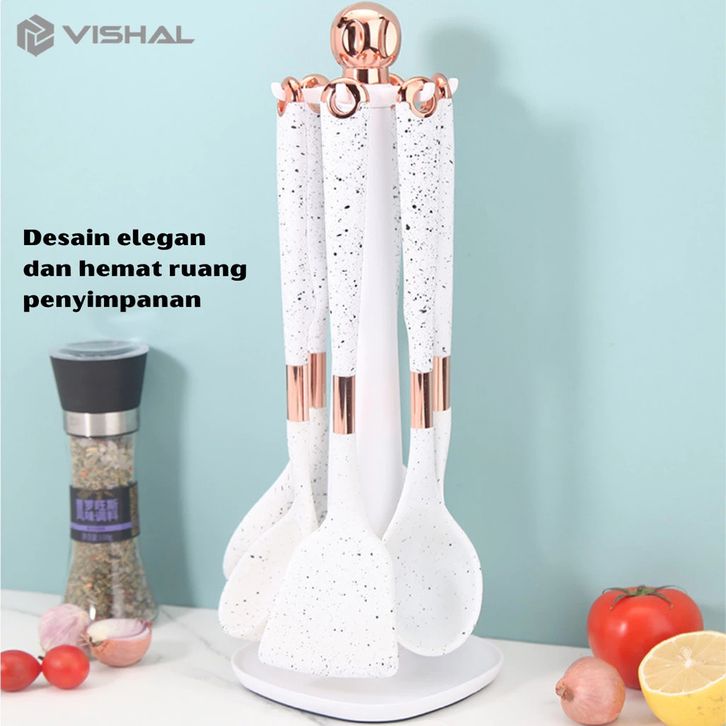 FREE ONGKIR Spatula Silicone Set 7IN1 Aesthetic Stand Spatula Premium Mewah Motif Marmer Utensile VS-1878