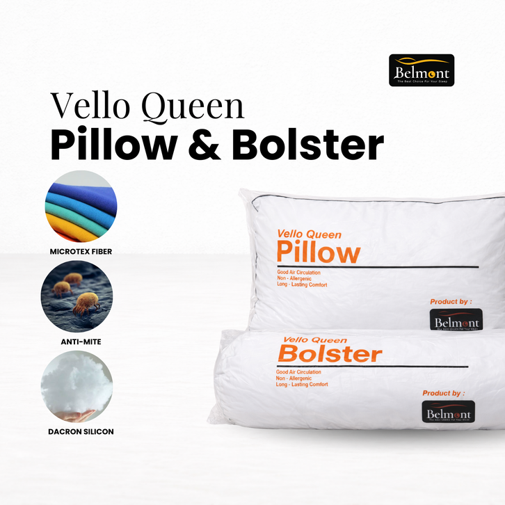 Bantal dan Guling tidur Velo Queen by Belmont ( 1 Bantal + 1 Guling )