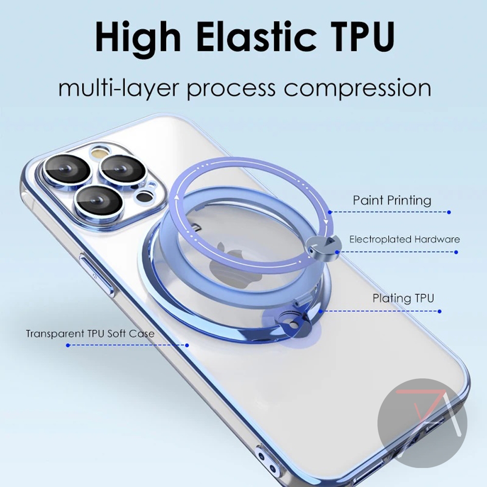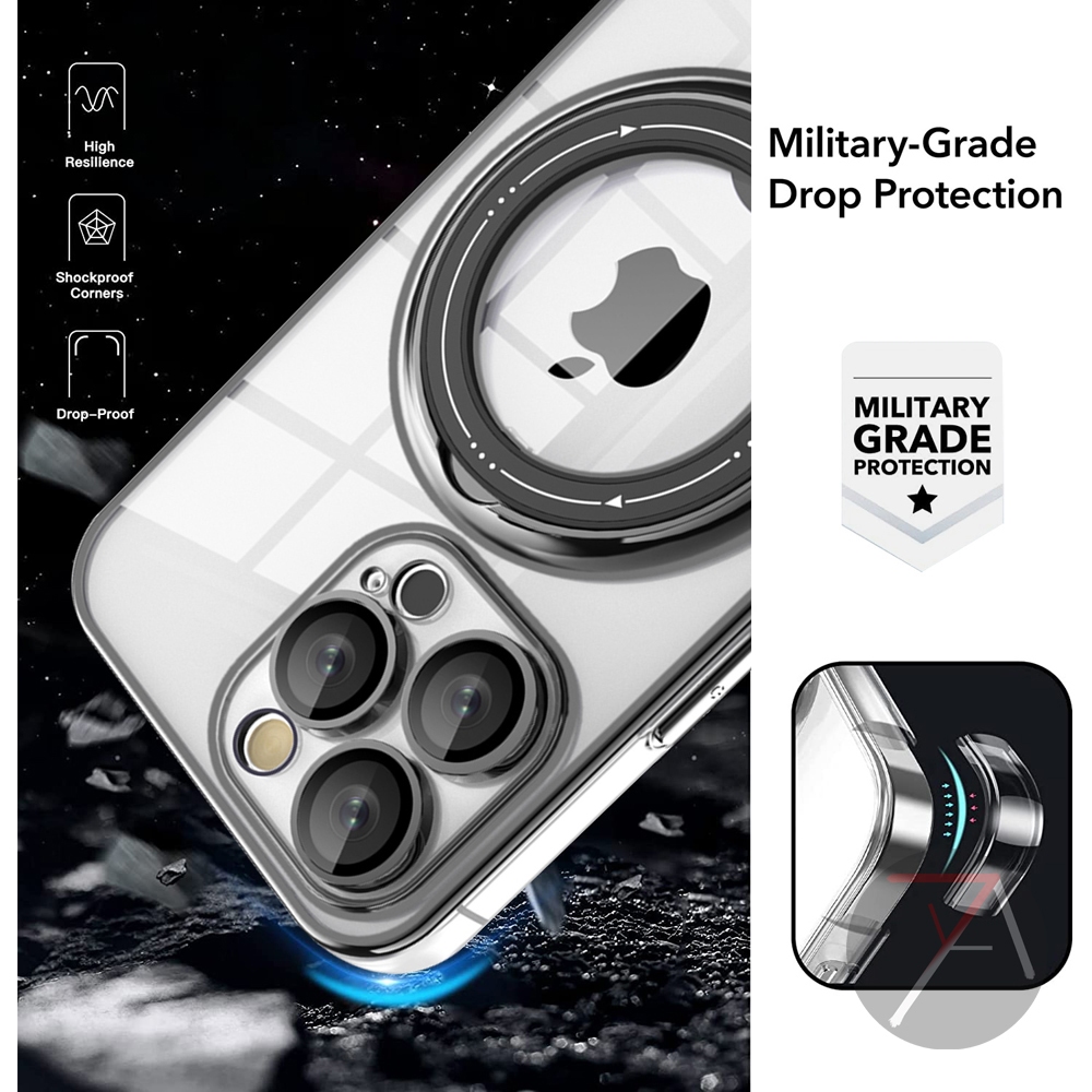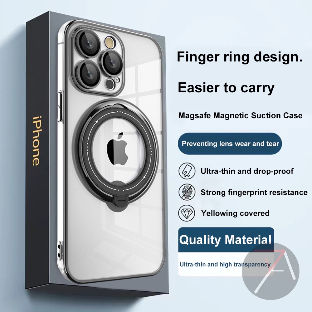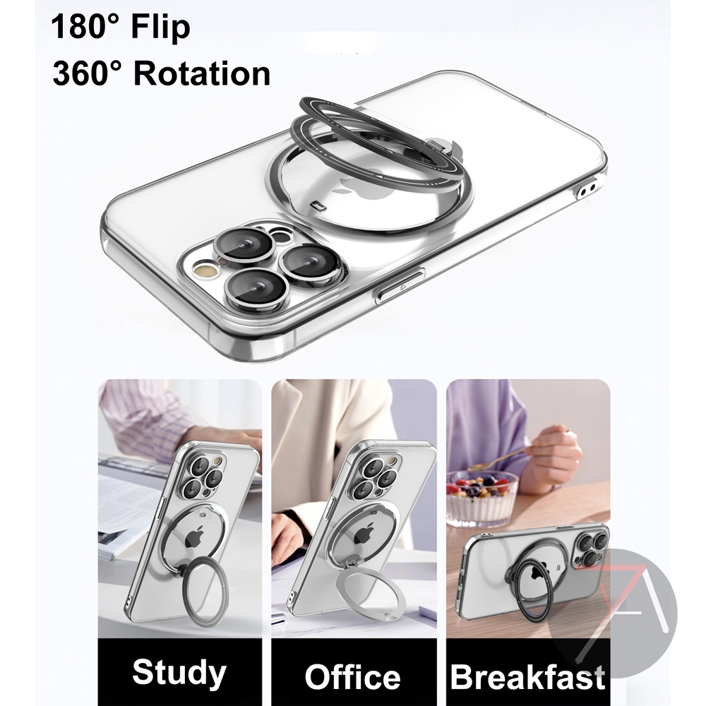 AKOMO Case Iphone 15 Pro Max 14 13 12 15Pro 14Pro 13Pro SHIRA Magsafe Softcase Kick Stand 360 Ring Silicone CLEAR & GLIT