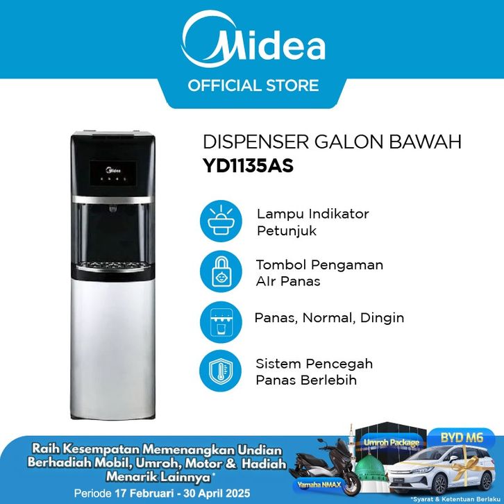 DISPENSER AIR PANAS DINGIN ES MIDEA KRAN GALON BAWAH HOT COLD YD1135AS BOTTOM LOADING STAINLESS STEEL