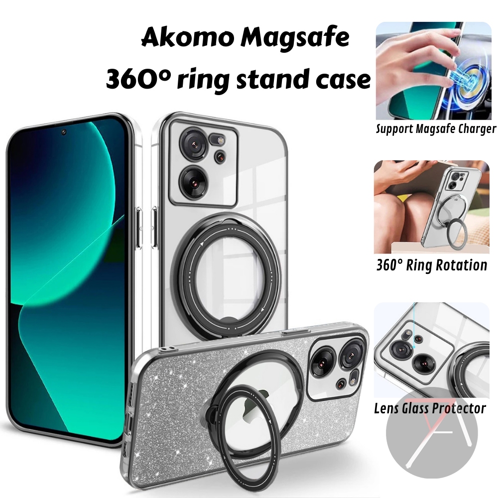 AKOMO Case Xiaomi 13T Xiaomi13T SHIRA Magsafe Softcase Kick Stand 360 Ring Silicone Soft CLEAR & GLITTER With Camera Len