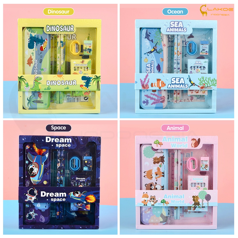 LAKOE Kotak Pensil Anak Set Stationery/Alat Tulis Kotak Pensil Karakter/Alat Tulis set Lengkap