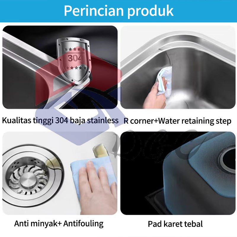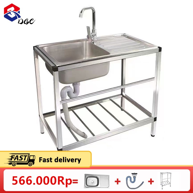 DGC Kitchen Sink Stainless Bak Cuci Piring Wastafel portabel Minimalis 75x40CM+Tempat Wastafel dari Baja Tahan Karat