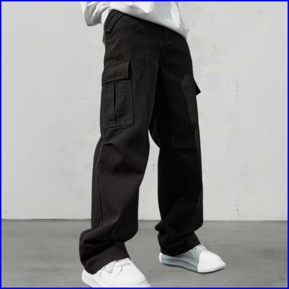 Vcrl - Celana Panjang Cargo Jeans Pria Korean Stlye Loose Gombrang Pria Bahan Tebal Premium Skena