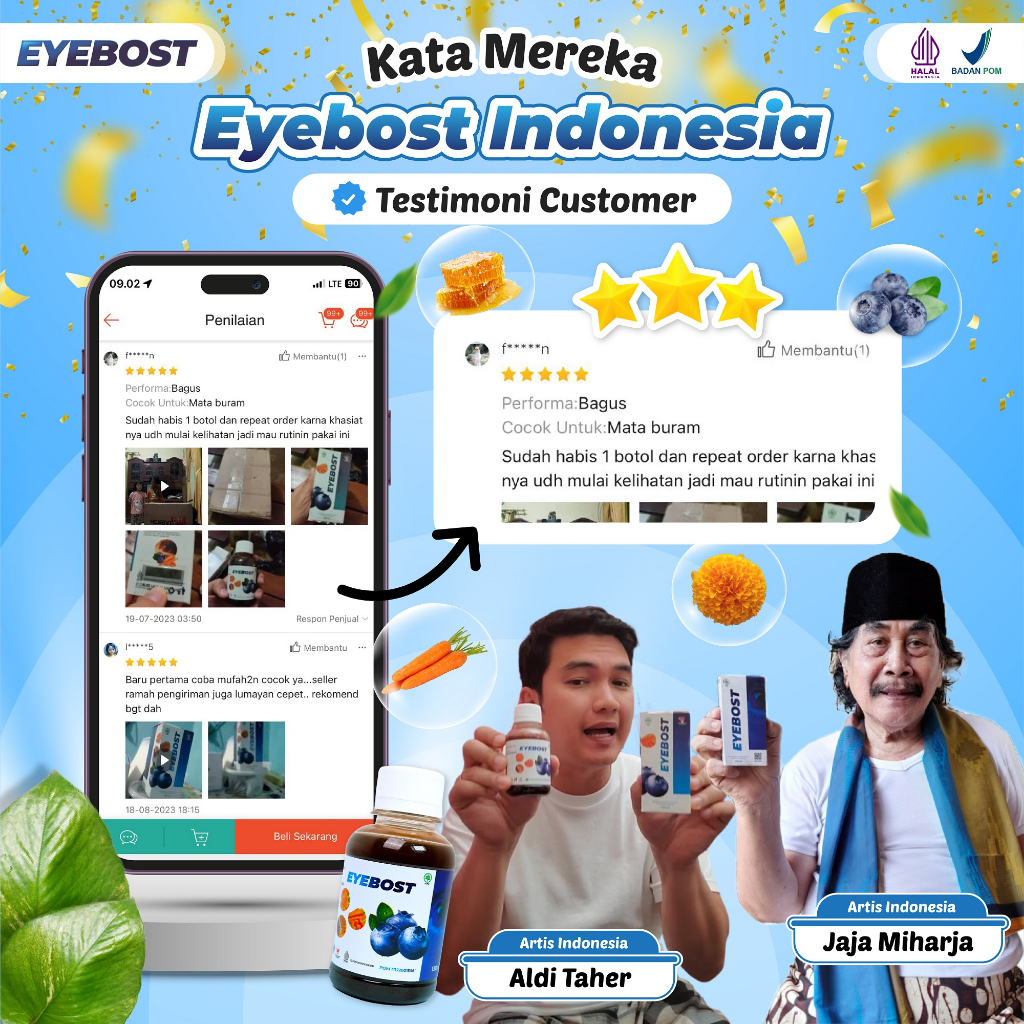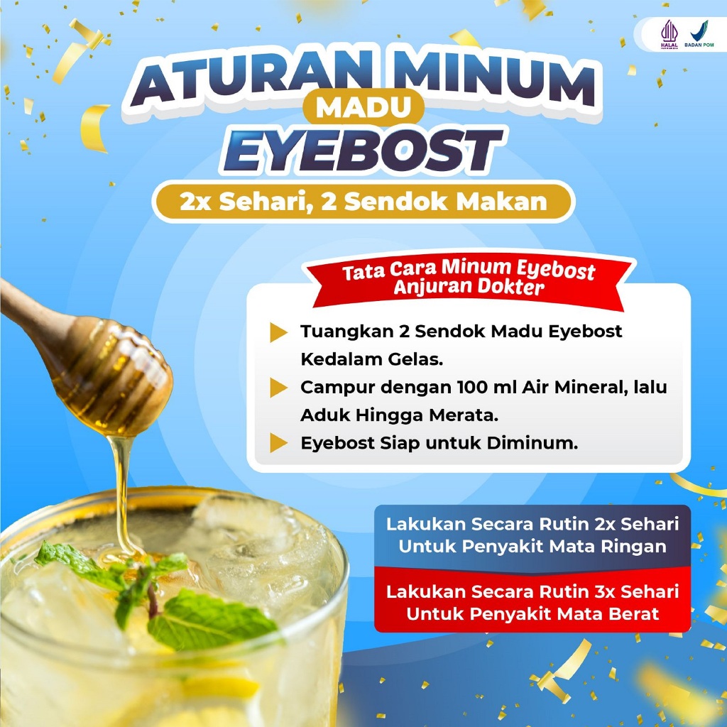 EYEBOST Madu Vitamin Mata Herbal Mengatasi Masalah Mata Pyteregium Glaukoma Katarak Minus Silinder Dll BPOM Halal MUI