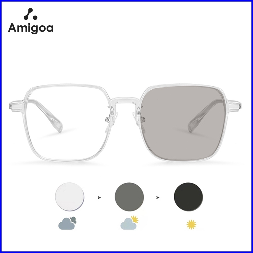 Kacamata Lensa Photocromic Anti Radiasi Photocromic Wanita Kacamata Bingkai Persegi Anti Cahaya Biru Bingkai Warna Trans