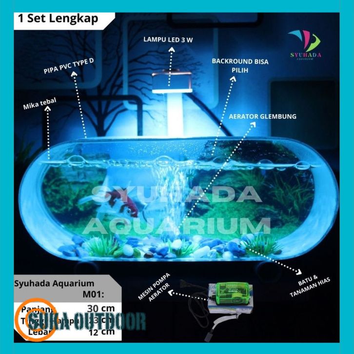 1 SET AQUARIUM MINI PVC PLUS POMPA AERATOR DAN LAMPU LED AKUARIUM CUPANG GUPPY DEKORASI AQUARIUM MINIMALIS