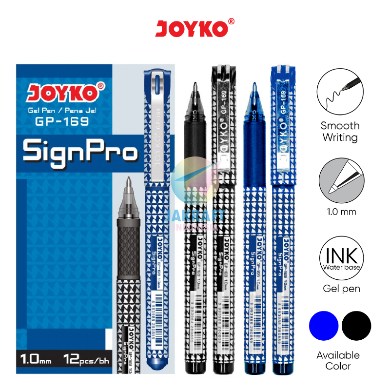 (12Pcs)GROSIR Pulpen Gel Pen Tanda Tangan JOYKO GP-169 Signpro Hitam Biru/Black Blue Tebal 1.0 mm SignPro Signature|PACK