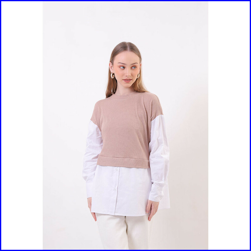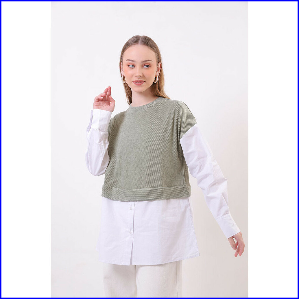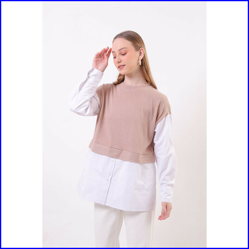Berrybenka - Kaos Rajut Panjang Mix Wanita Sofia Muava Top