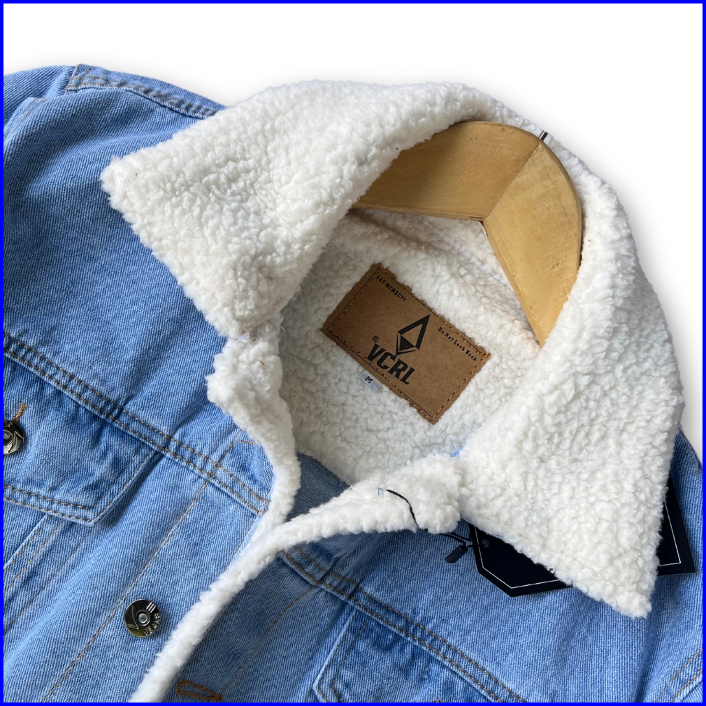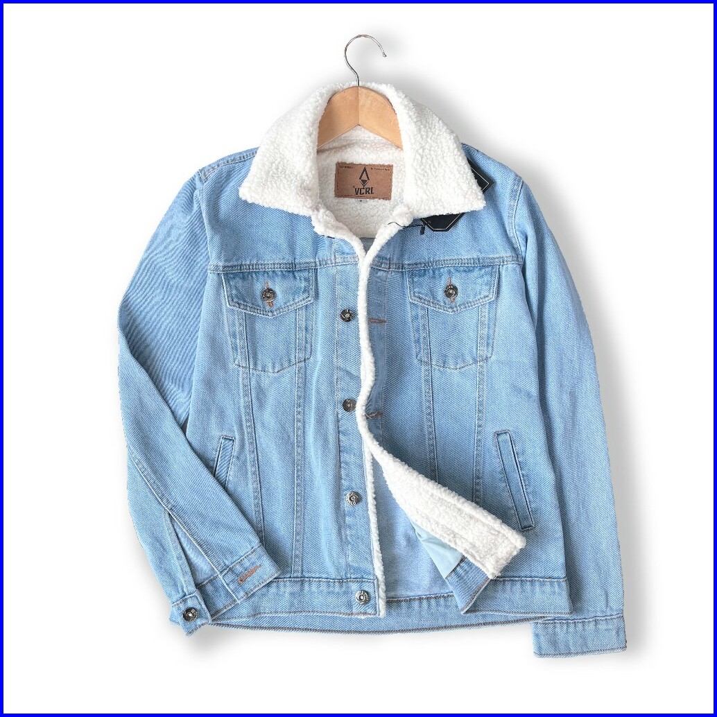 Vcrl- Jaket Jeans Pria Sherpa Denim Premium Bahan Tebal Model Korean Style Warna Bioblit
