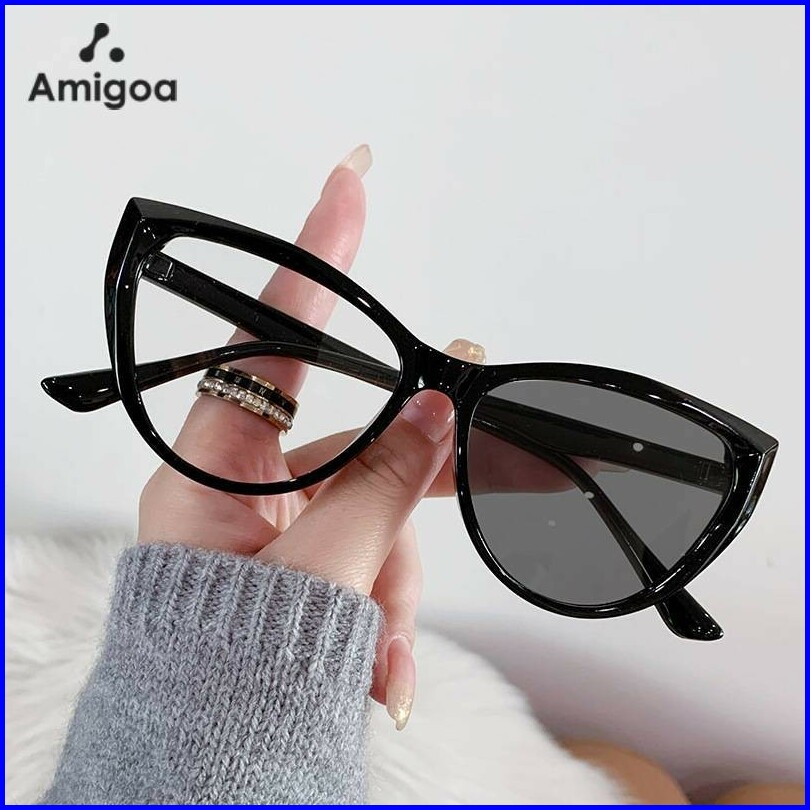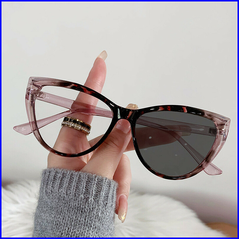 2 In 1 Kacamata Photocromic Anti Radiasi Kacamata Hitam Cat Eyes Anti Cahaya Biru Sinar Uv Kacamata Outdoor Wanita - Ami