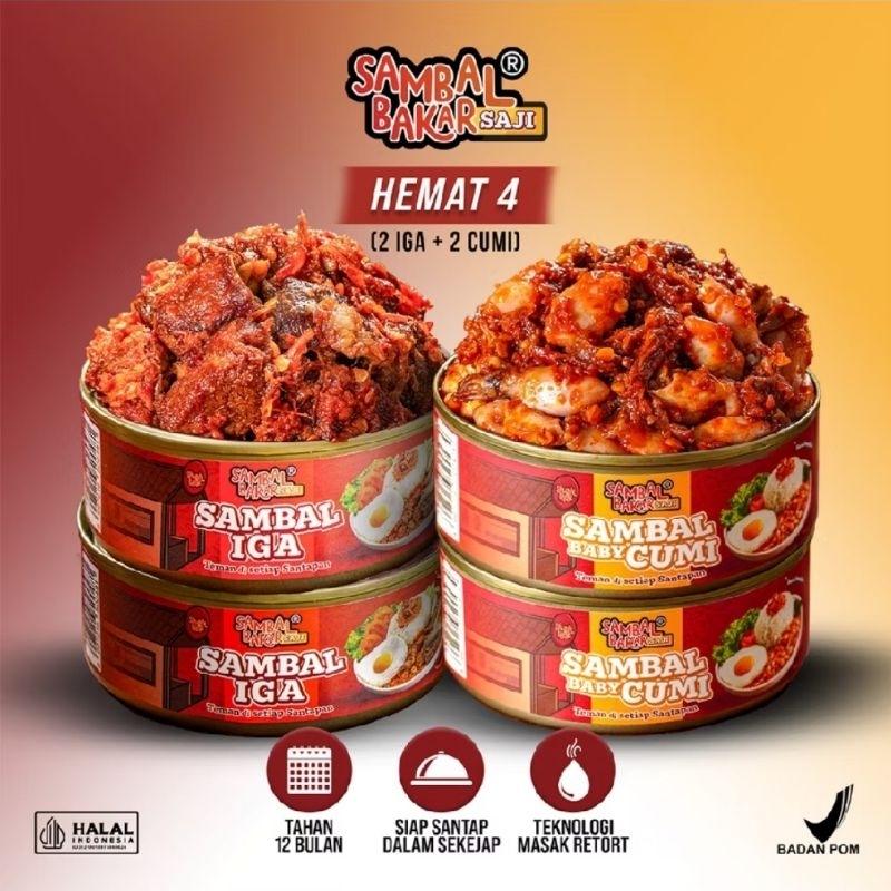 Sambal Bakar Saji Paket 4 Pcs - Sambal Bakar Iga / Baby Cumi / Ayam 140g / 100 Halal