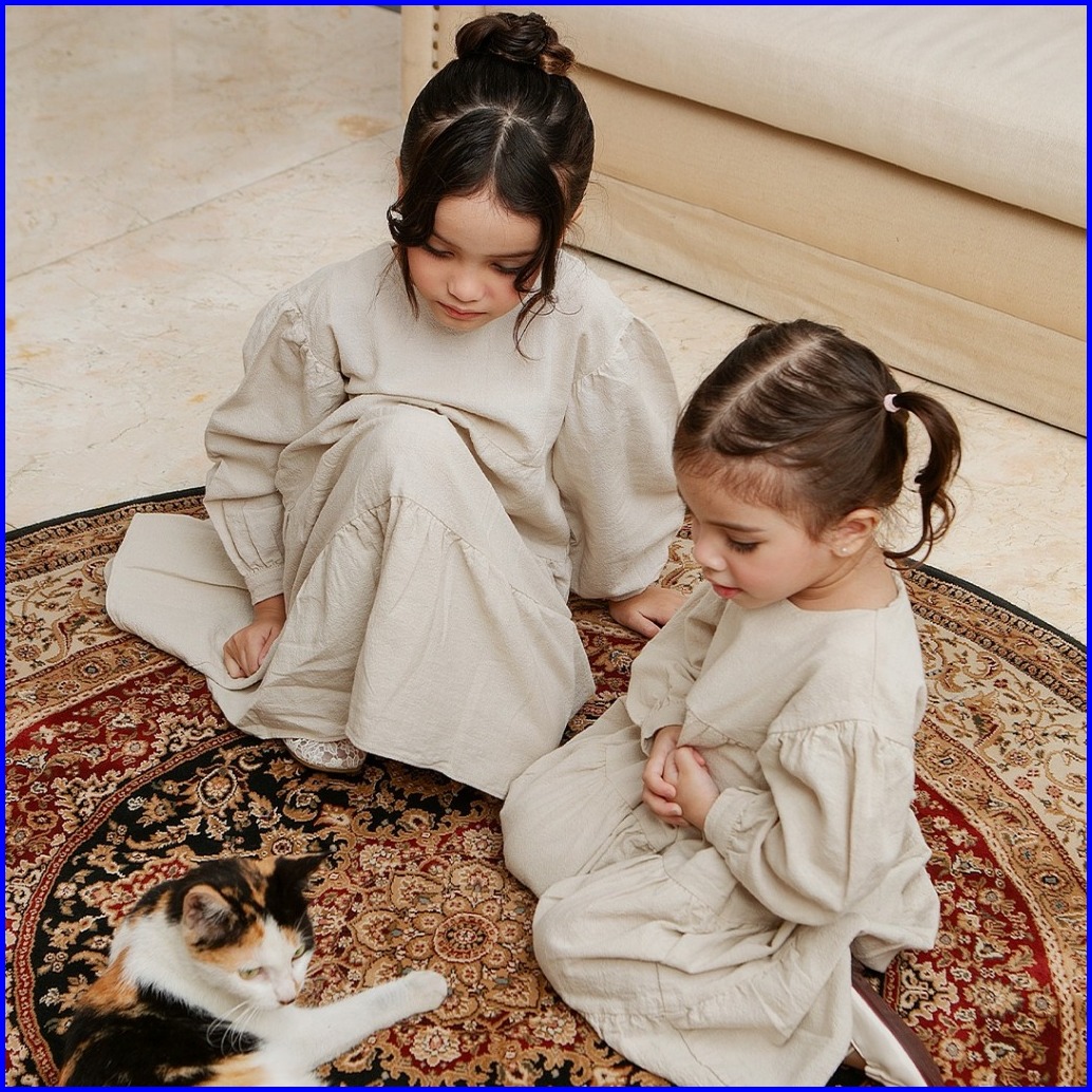 Lozy Hijab - Hafa Sarimbit Family Set Lozy X Hamidah Farhad Family Sarimbit Dress Koko Anak Bahan Cotton Linen