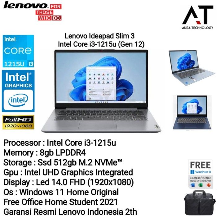 Lenovo ideapad slim 3 i3-1215u 8gb ssd 512gb 14- windows 11 ohs 2021 - 8GB SSD 512GB