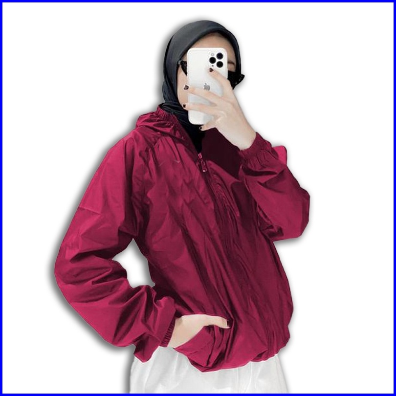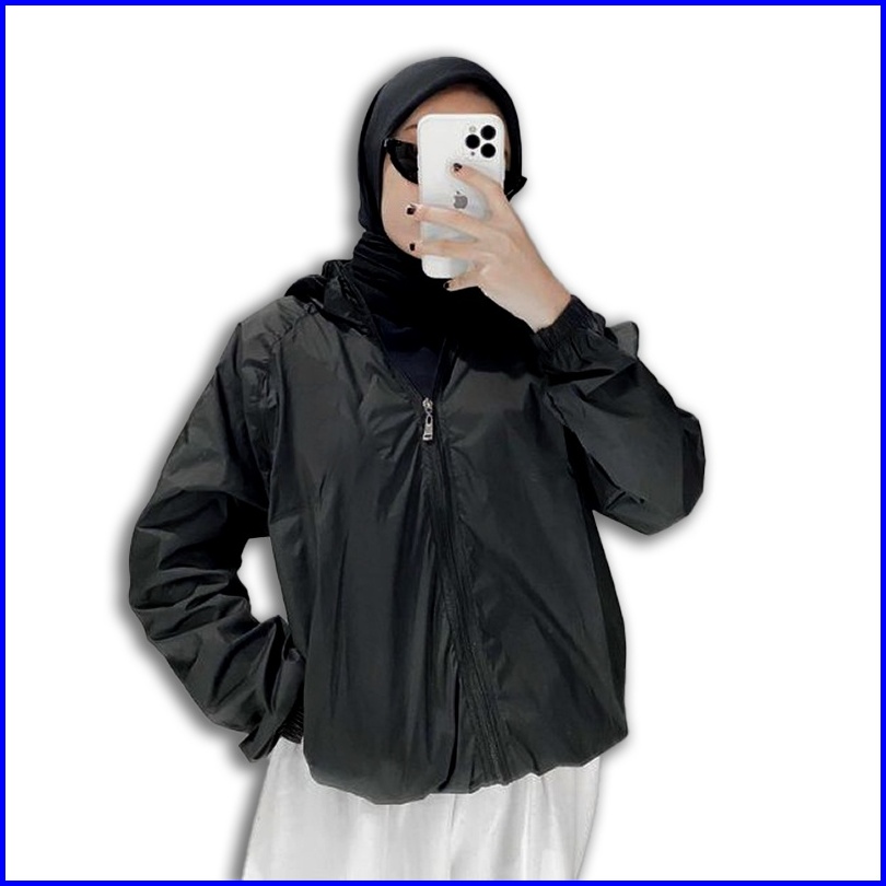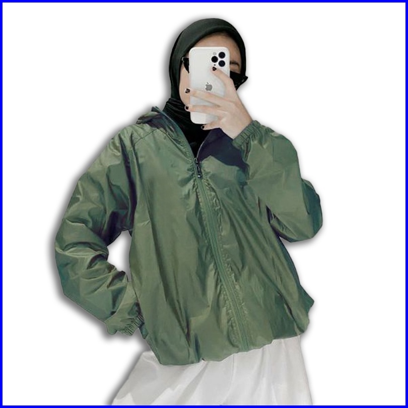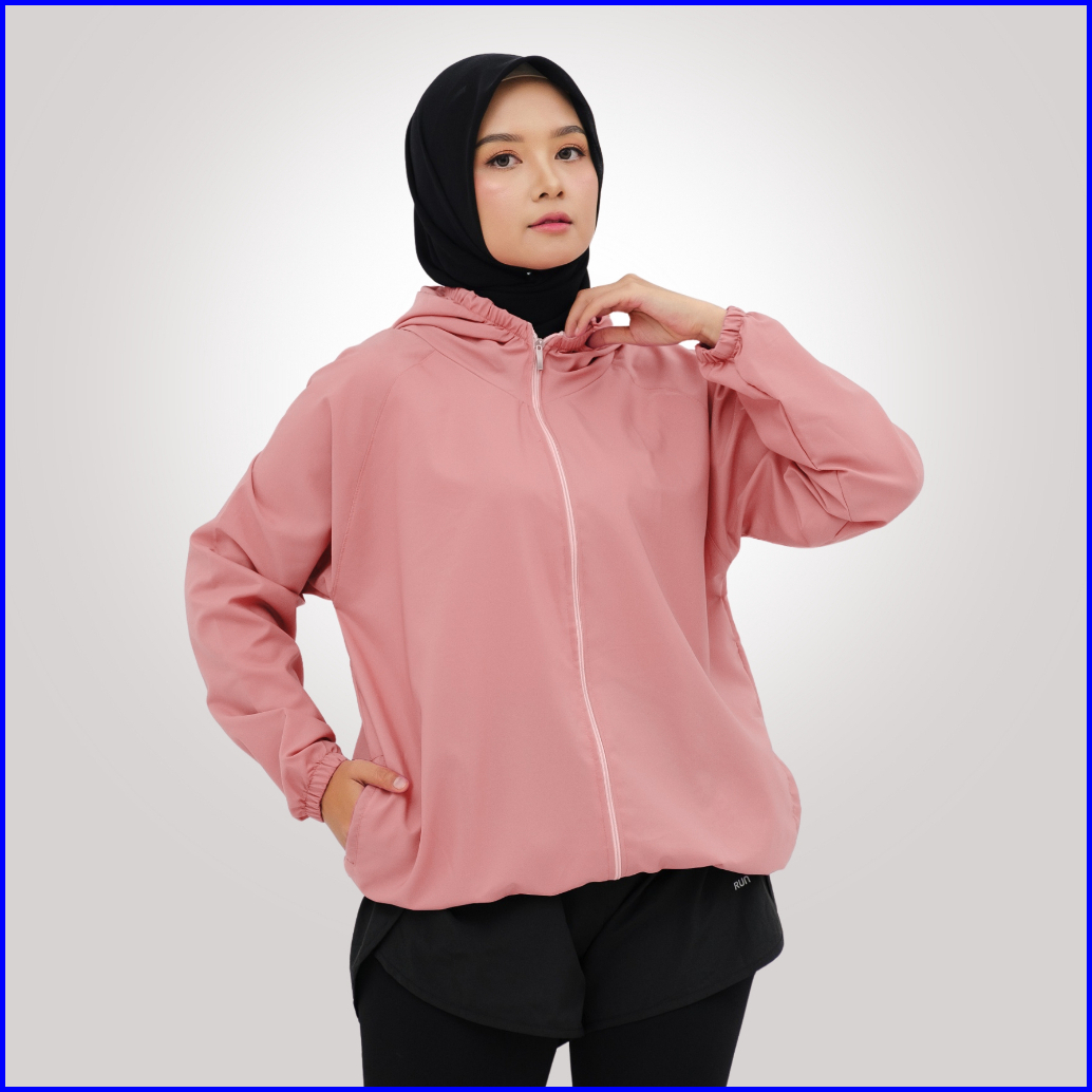 Vcrl Jaket Parasut Wanita Olahraga Senam Running Jogging Anti Uv Bahan Despo Hijab Jumbo Oversize