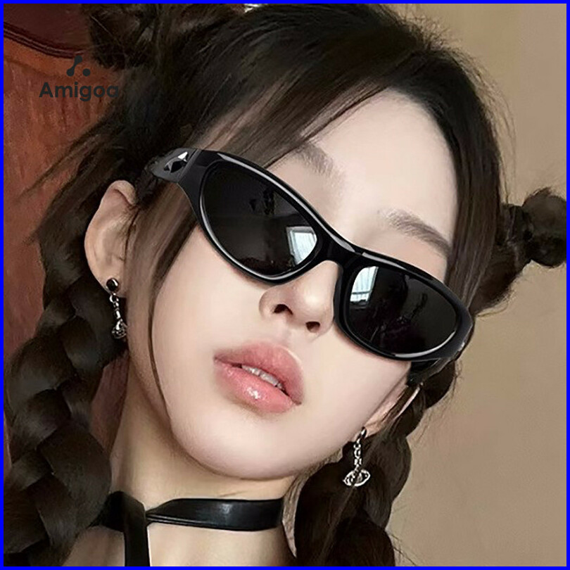 Kacamata Cyberpunk Hitam Retro Mata Kucing Kepribadian Modis Kacamata Hitam Gaya Y2k Gadis
