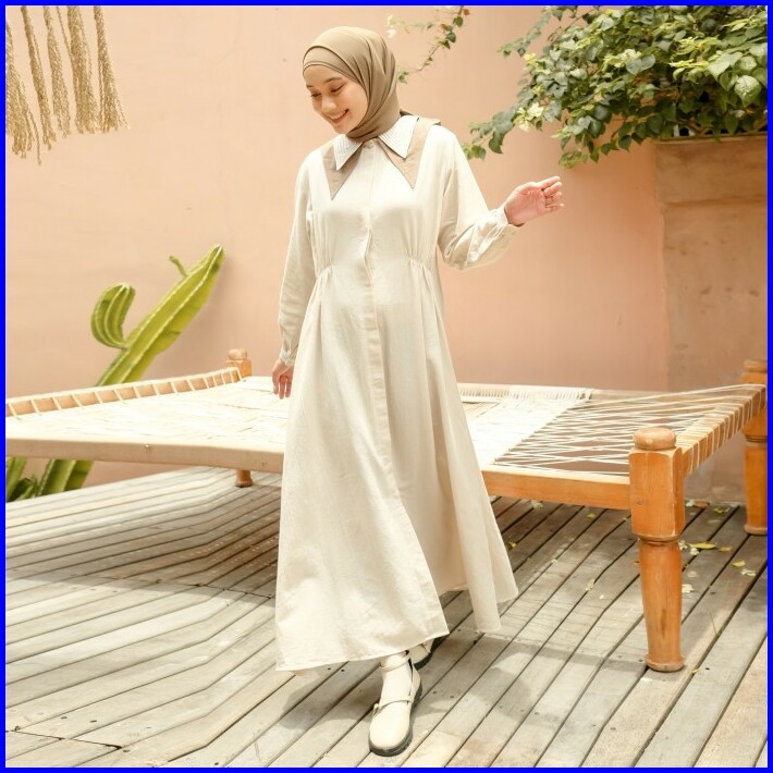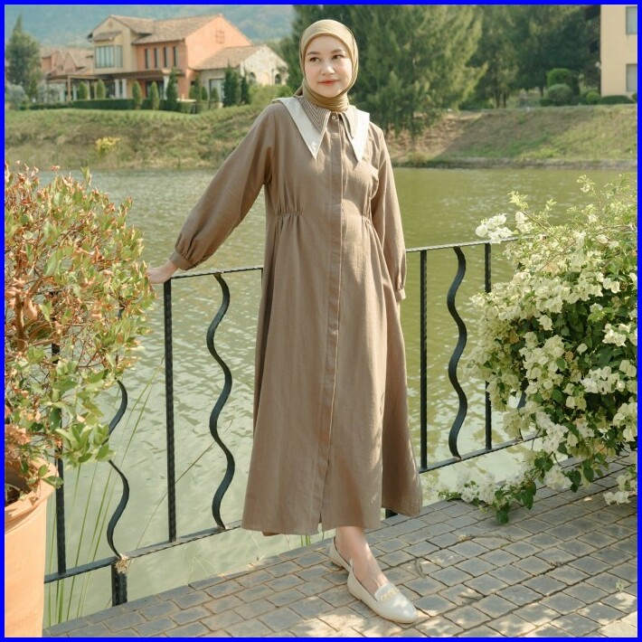 Lozy Hijab - Calla Dress Abaya Dress Collar Bahan Cotton Linen