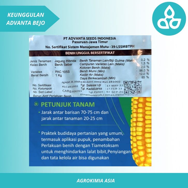 Benih Jagung Hibrida Silang Advanta Bejo Kemasan 1 Kg Asli Pabrik – Siap Kirim, Hasil Besar & Padat
