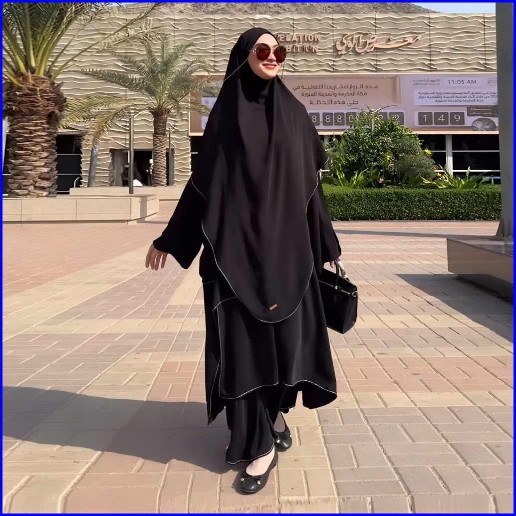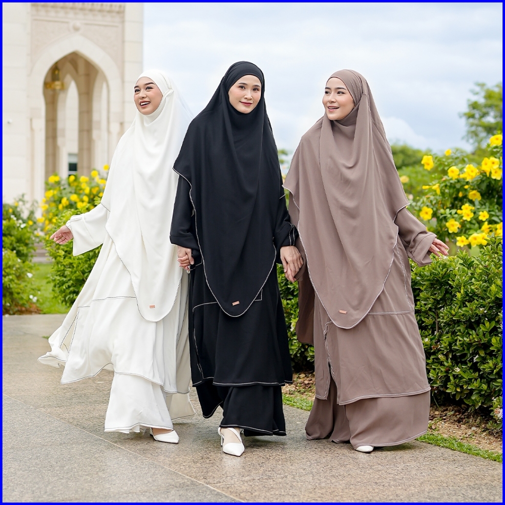 Lozy Hijab - Arumy Abaya Tunik Set Khimar Tunic Set Rok French Khimar Haji Dan Umrah Bahan Jupiter Anti Uv