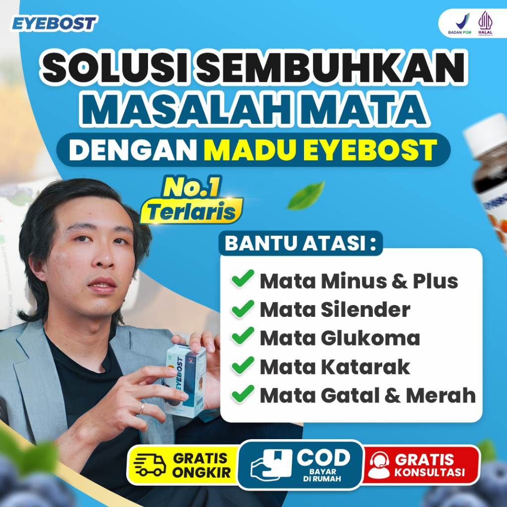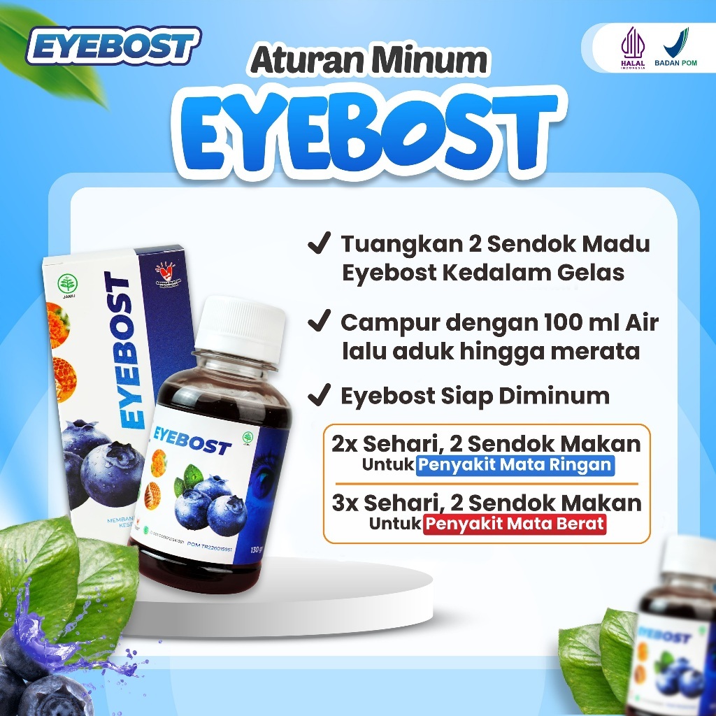 EYEBOST-Mad Eyebost Madu Vitamin Mata Herbal Atasi Masalah Mata Berlemak Glaukoma Katarak Minus Silinder BPOM Halal MUI