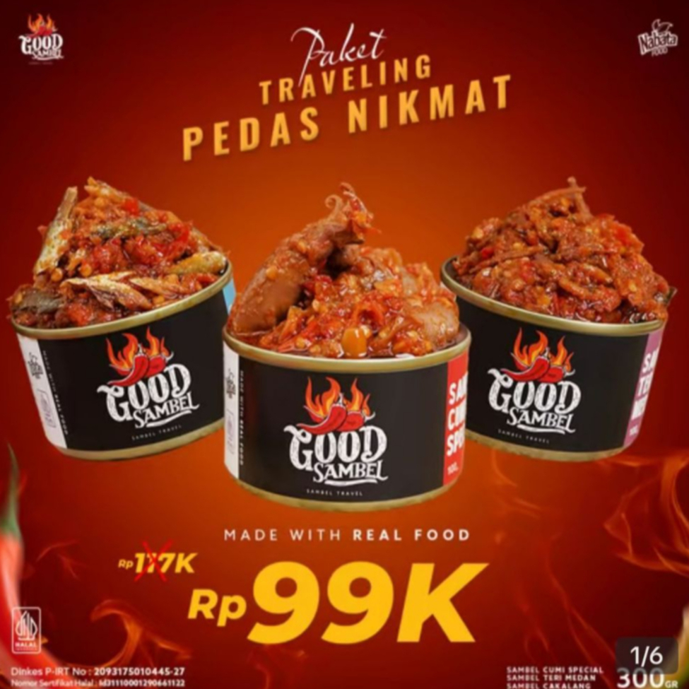 Paket Sambal 3 Varian Good Sambel Premium Cumi Spesial, Cakalang, & Teri Medan, Praktis Pedas Gurih