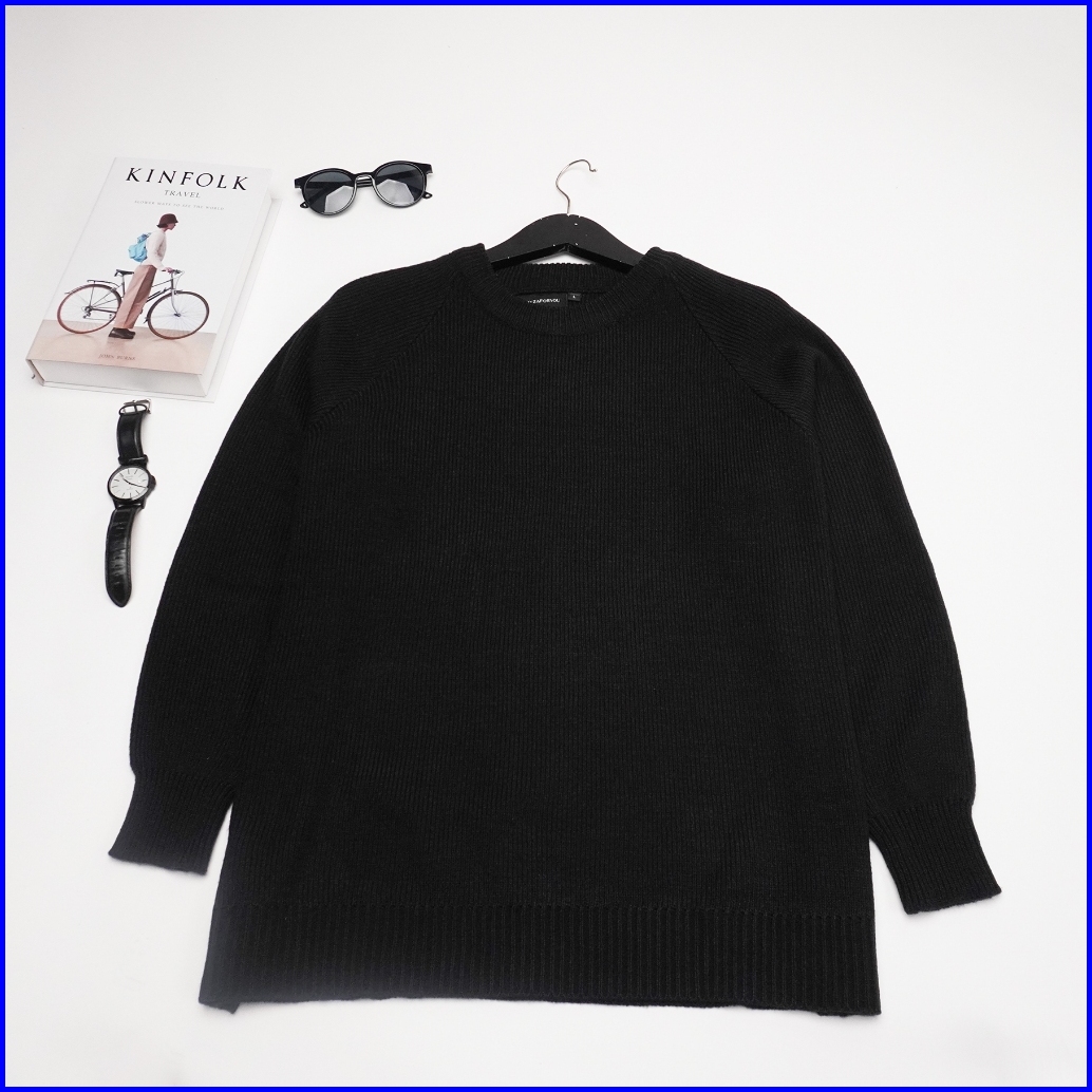 Ahlami-sweater Crewneck Hitam Rajut Pria Lengan Panjang