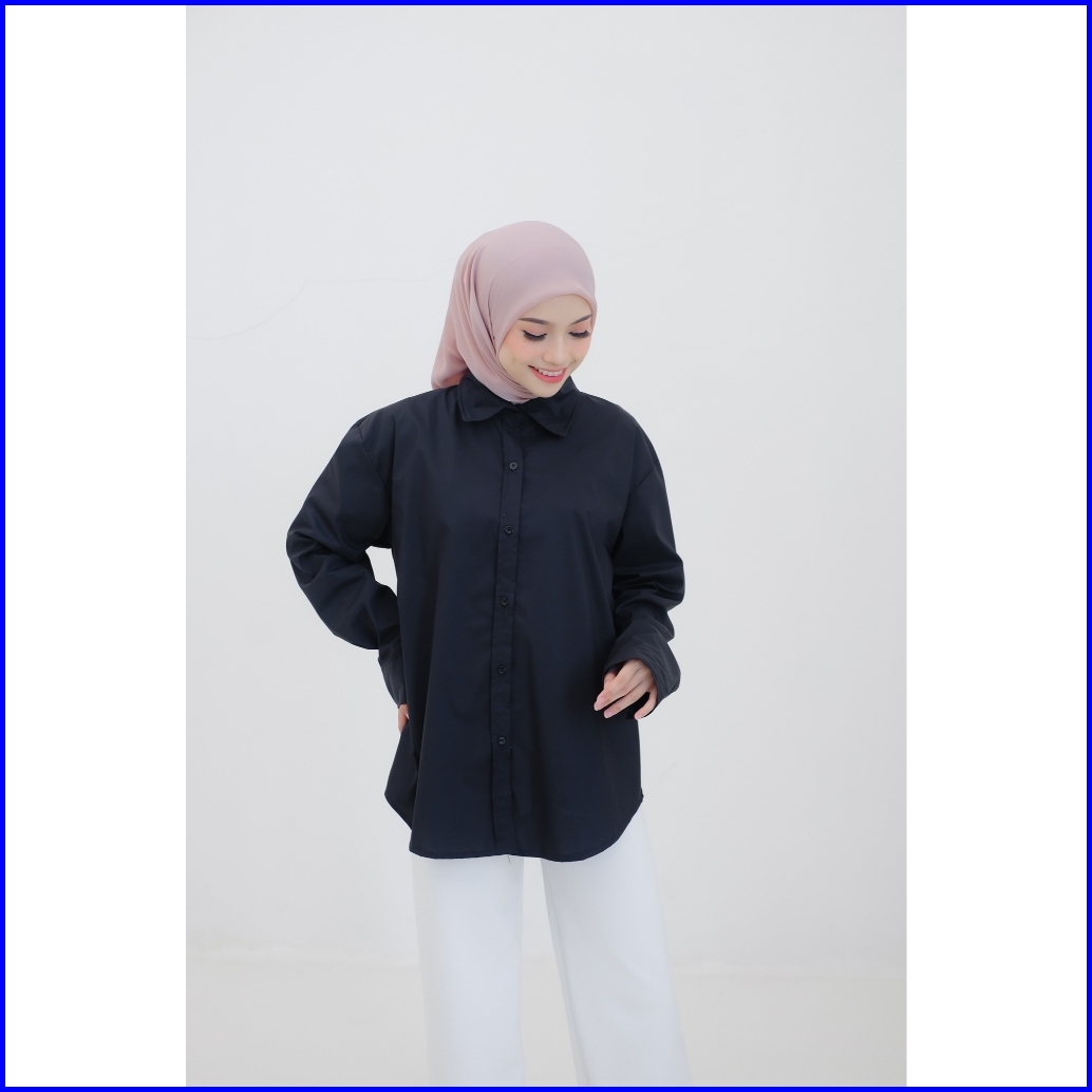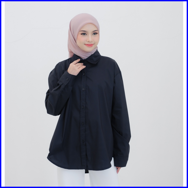 Ahlami- Sheena Shirt Oversize Kemeja Jumbo Katun Poplin Kemeja Wanita Kemeja Korean Style