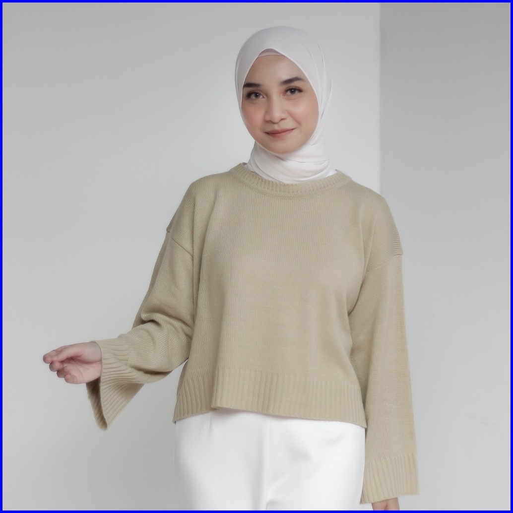 Ahlami- Noura Basic Crop Top Oversize Crop Top Rajut Sweatshirt Crop Oversize Panjang Lengan Sweater Oversize