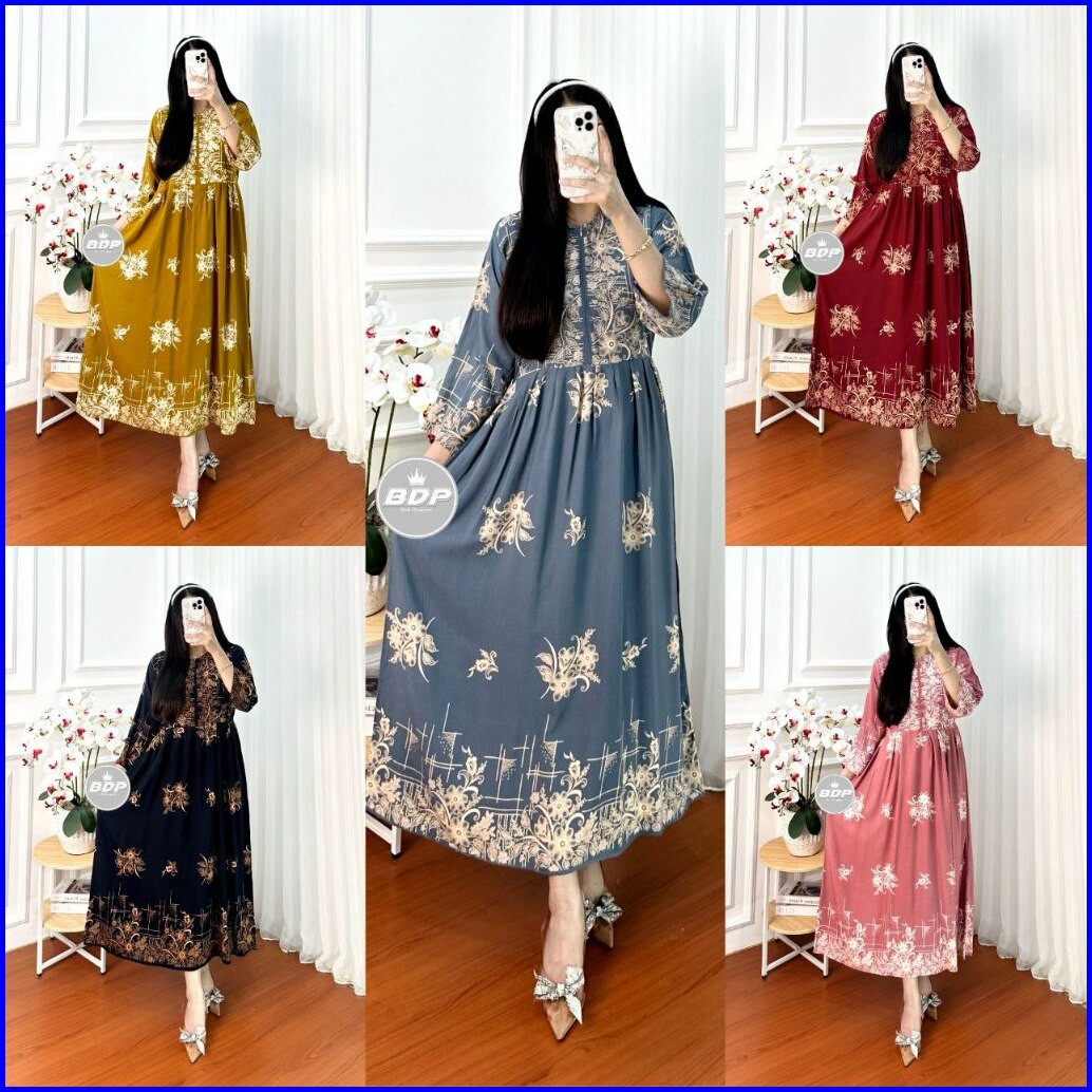 Dianputri - Daster Dress Maura Batik Cap Rayon Grade A Busui - Daster Wanita Lengan Panjang - Daster Kekinian - Baju Tid