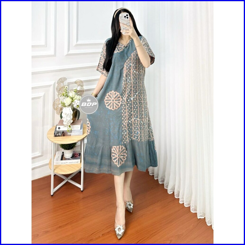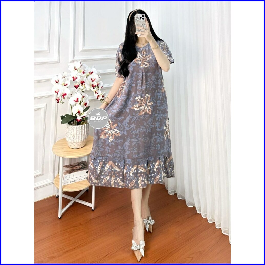 Dianputri - Daster Batik Cap Colet Motif Viral Terbaru Rayon Grade A Premium Busui Reselting Depan - Daster Kekinian - D